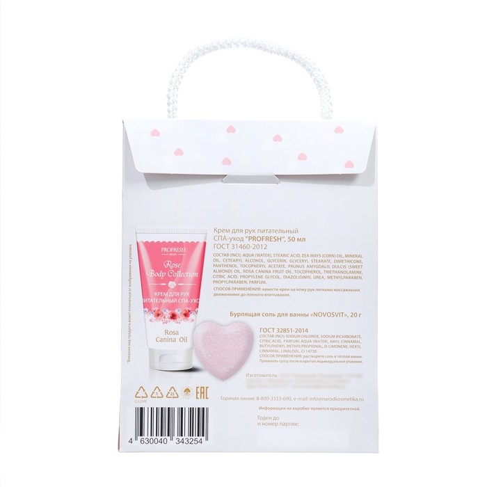 Подарочный набор Profresh: Крем для рук СПА-уход, 50 мл + Бурлящая соль для ванны, 20 г