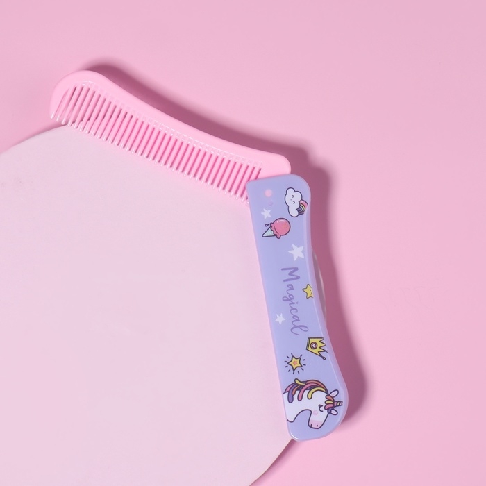 Расчёска массажная, складная, с зеркалом, d = 6,5 см, рисунок МИКС