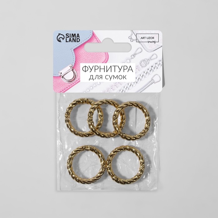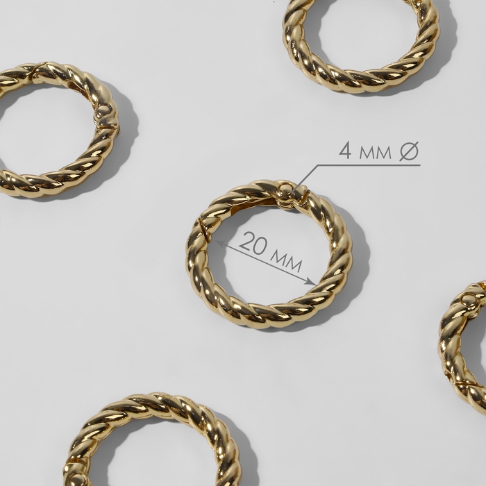 Кольцо-карабин, плетёное, d = 20/28, толщина - 4 мм, 5 шт, цвет золотой