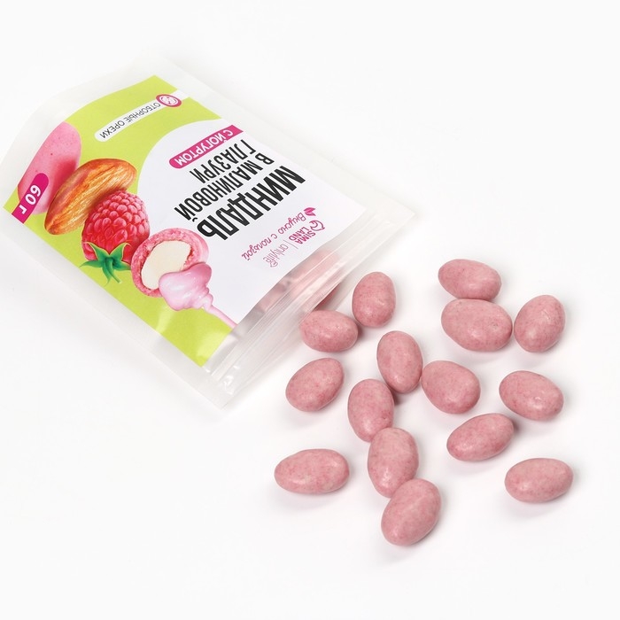 Миндаль в малиновом шоколаде с йогуртом, 60 г.
