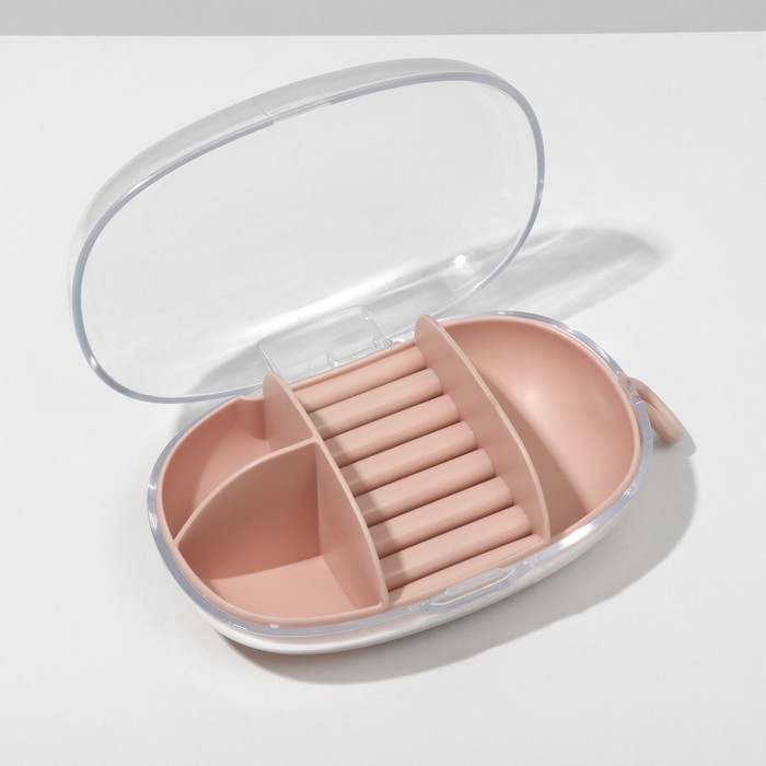 Подставка для украшений «Шкатулка портативная» 3 ячейки, 7 полос, 15×8×5 см, цвет розовый