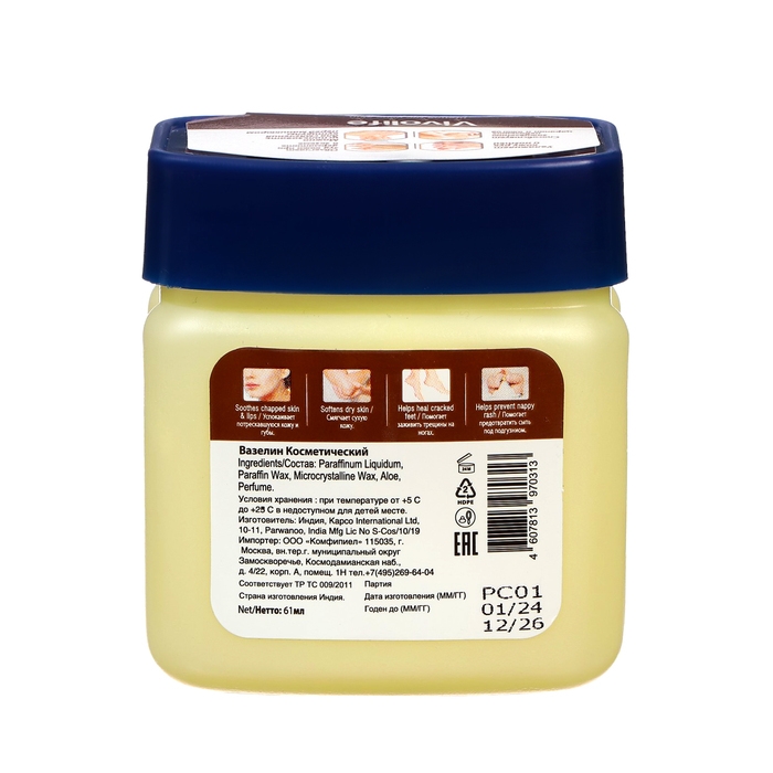 Откройте для себя секрет совершенства кожи с уникальным косметическим вазелином от Vivolife! Невесомая текстура и увлажняющая формула делают его идеальным выбором для ухода за Вашей кожей. Восстанавливайте мягкость и ухоженность с вазелином в классической баночке с легендарным дизайном, который помогает бороться с сухостью, трещинами и шелушением. Преобразите свою кожу, сделав ее невероятно гладкой и увлажненной. Вдохните жизнь в свою красоту с косметическим вазелином Vivolife – Вашим надежным партнером в уходе за кожей, который приносит нежность и заботу каждому уголку Вашего тела!