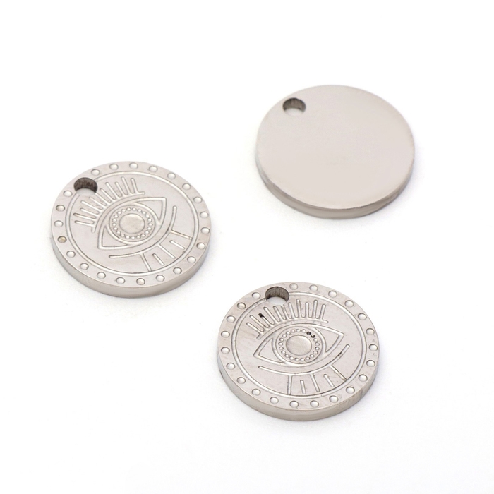 Подвеска «Монетка» глаз, набор 3 шт., цвет серебро