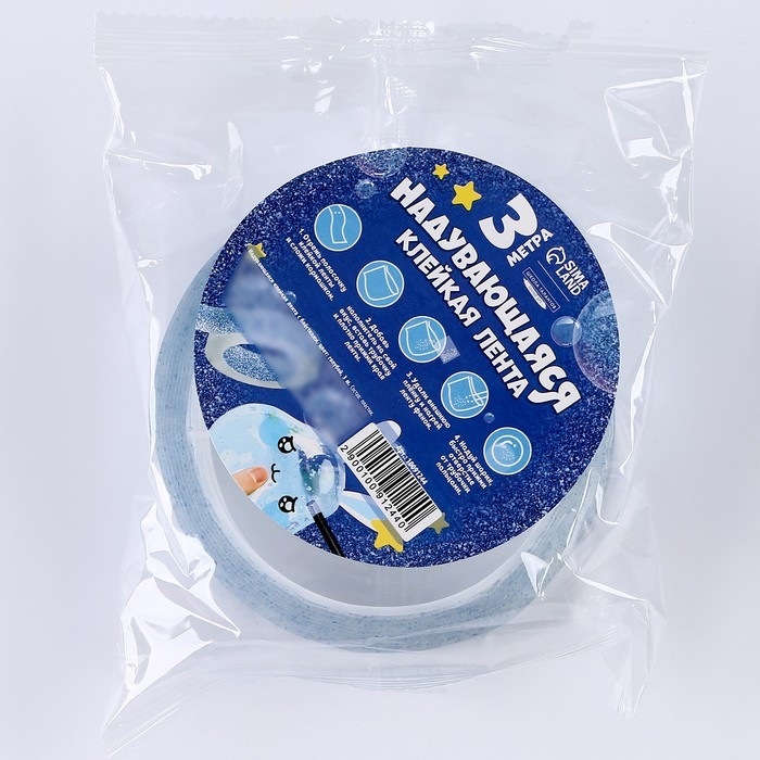Надувающаяся клейкая лента с блестками, цвет голубой, 3 м