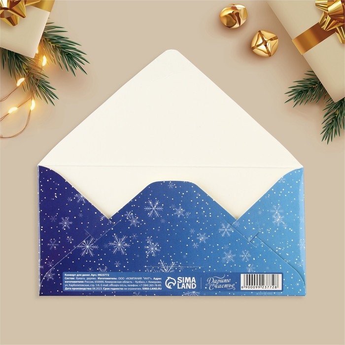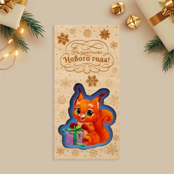 Конверт для денег деревянный резной «Волшебного Нового года!», белка, 16.5 х 8 см, Новый год