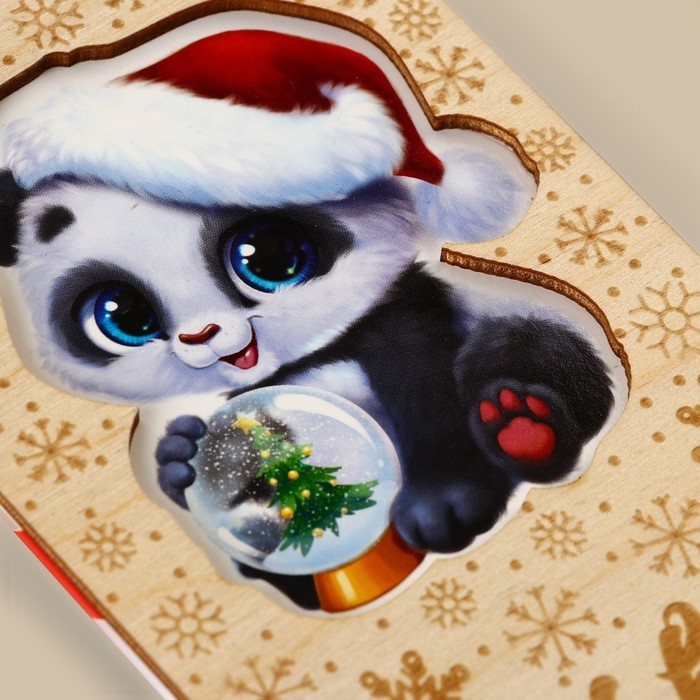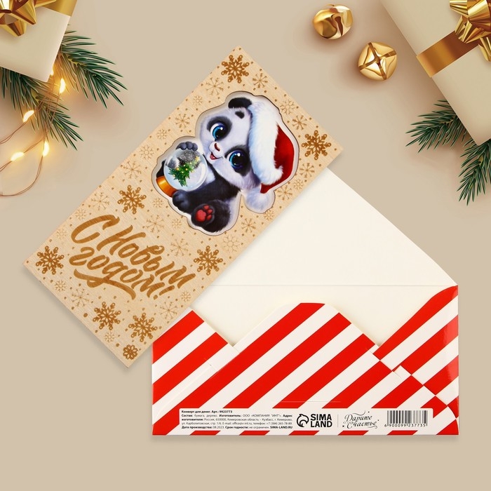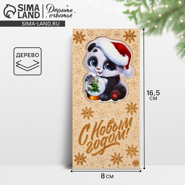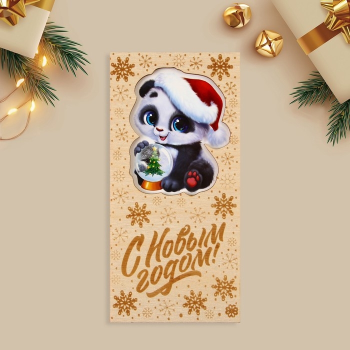Конверт для денег деревянный резной «С Новым годом!», панда, 16.5 х 8 см, Новый год