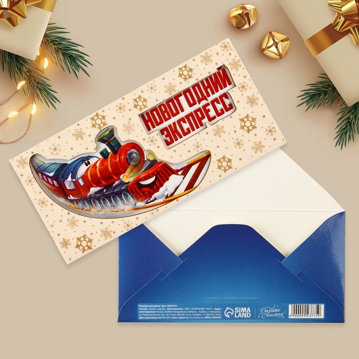 Конверт для денег деревянный резной «Новогодний экспресс», поезд, 16.5 х 8 см, Новый год