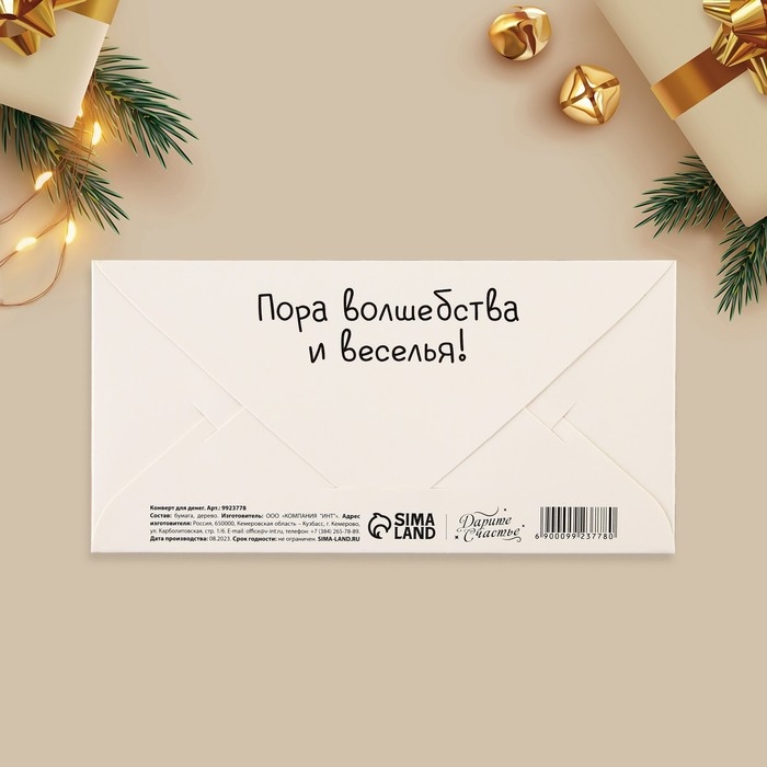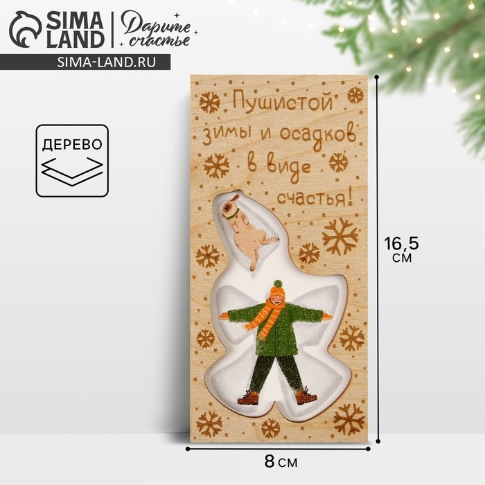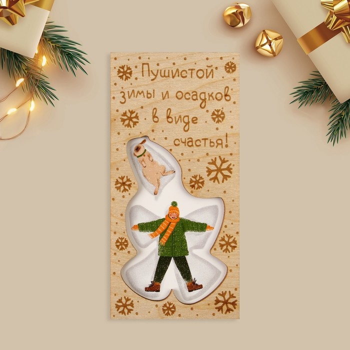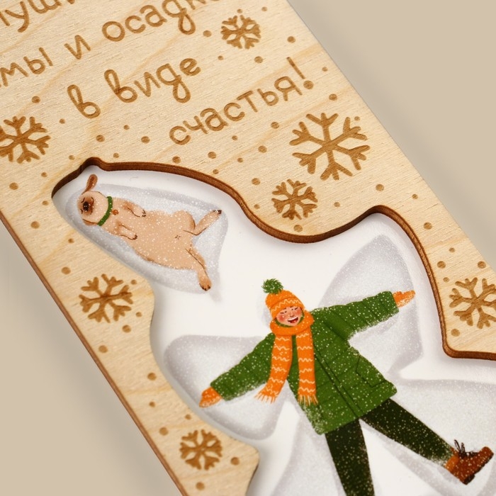 Конверт для денег деревянный резной «Осадков в виде счастья!», друзья, 16.5 х 8 см, Новый год