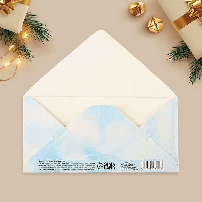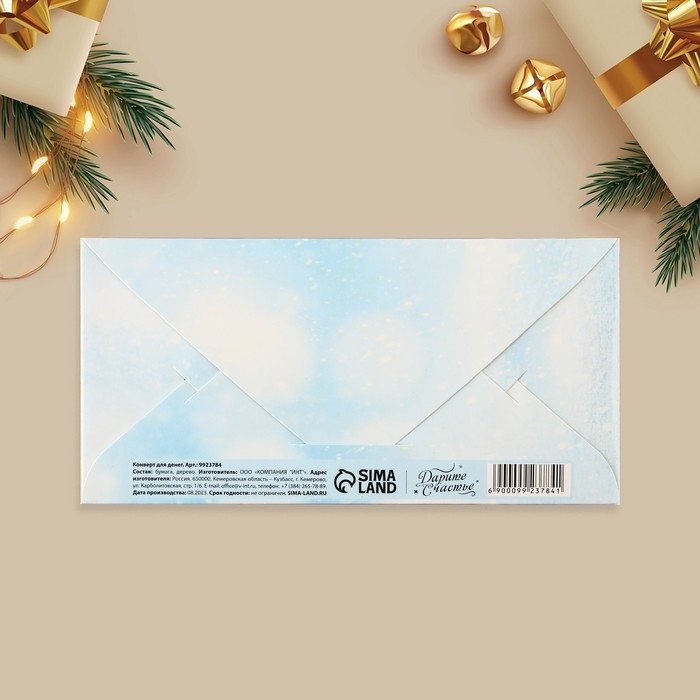 Конверт для денег деревянный резной «С Новым годом!», заяц, 16.5 х 8 см, Новый год