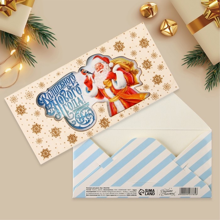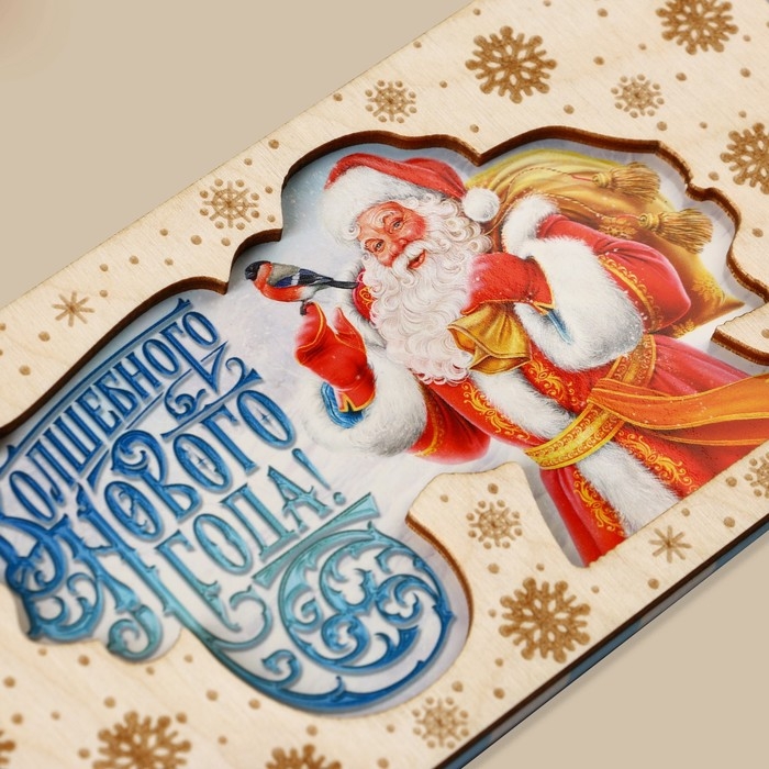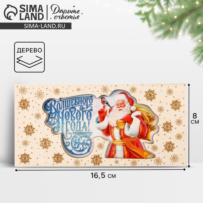 Конверт для денег деревянный резной «Волшебного Нового года!», Дед Мороз, 16.5 х 8 см, Новый год