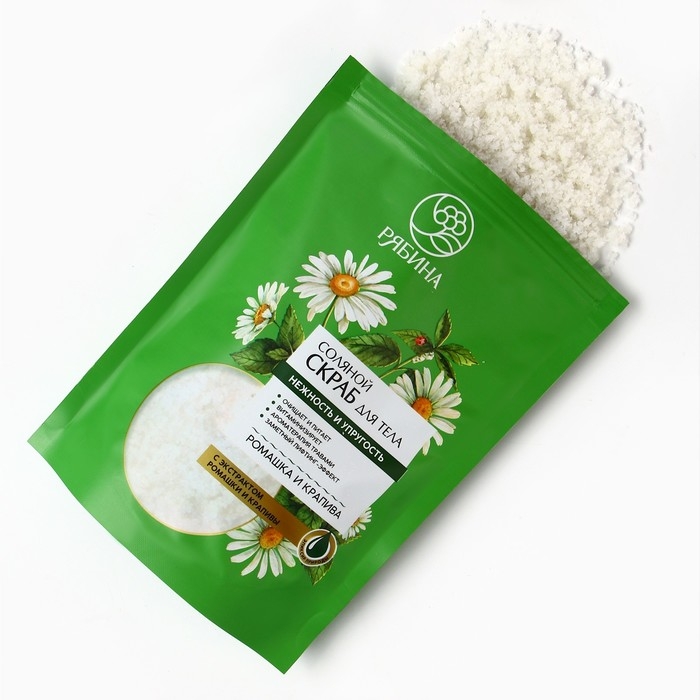 Cкраб для тела, соляной с экстрактом ромашки и крапивы, 250 г, РЯБИНА