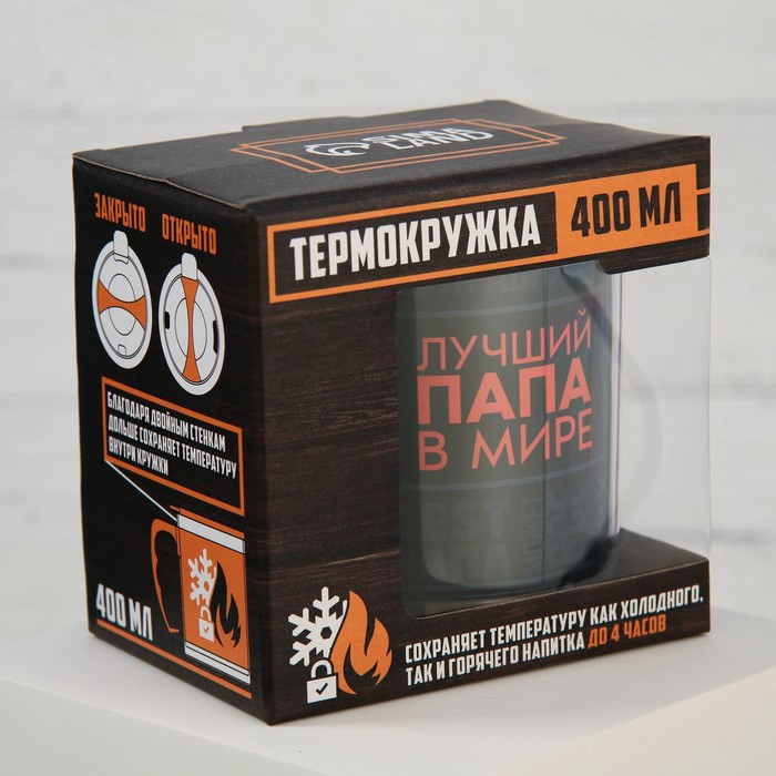 Термокружка «Лучший папа в мире», 400 мл, сохраняет тепло 2 ч