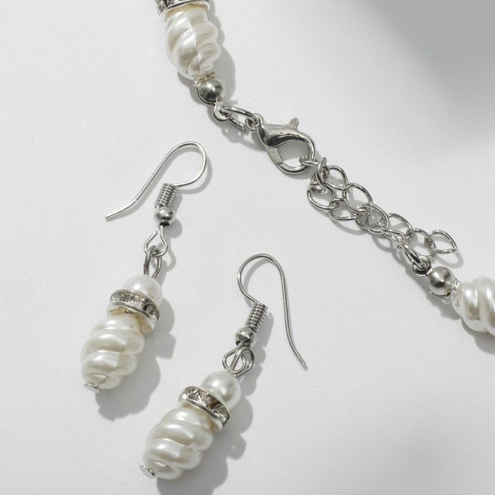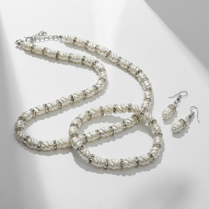 Набор 3 предмета: серьги, бусы, браслет «Жемчуг» кручёный, цвет белый в серебре, 45 см
