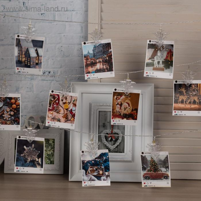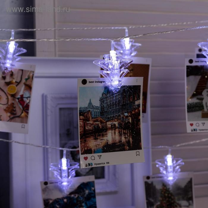 Гирлянда «Нить» 4.5 м с насадками «Прищепки-ёлочки», IP20, прозрачная нить, 20 LED, свечение белое, 220 В
