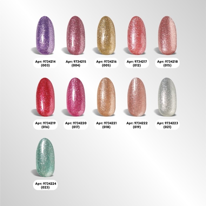 Гель лак создаёт объёмный блик, который под разным углом зрения переливается на свету.Индикатор цвета на верху бутылька, поможет Вам подобрать идеальный цвет.