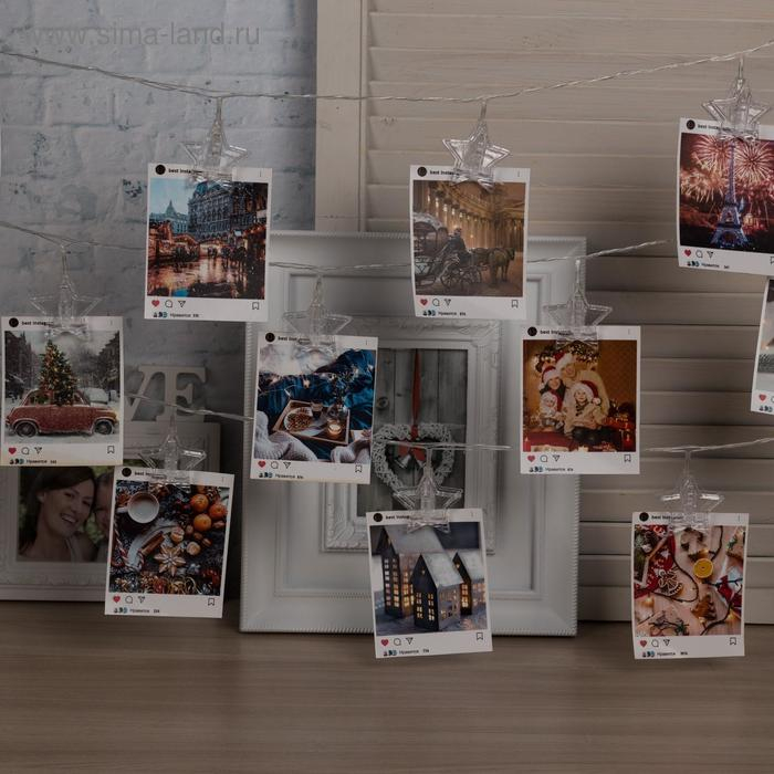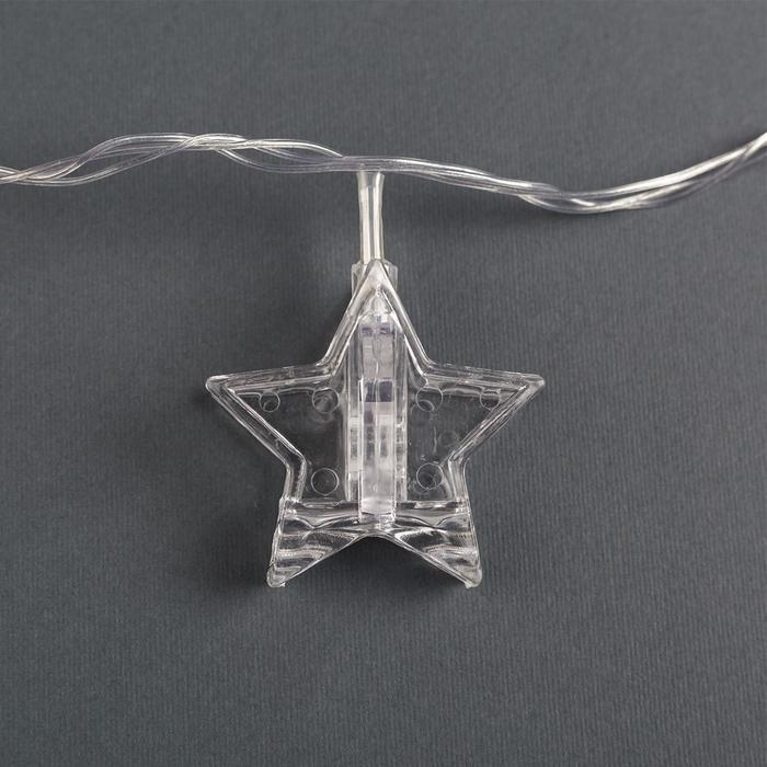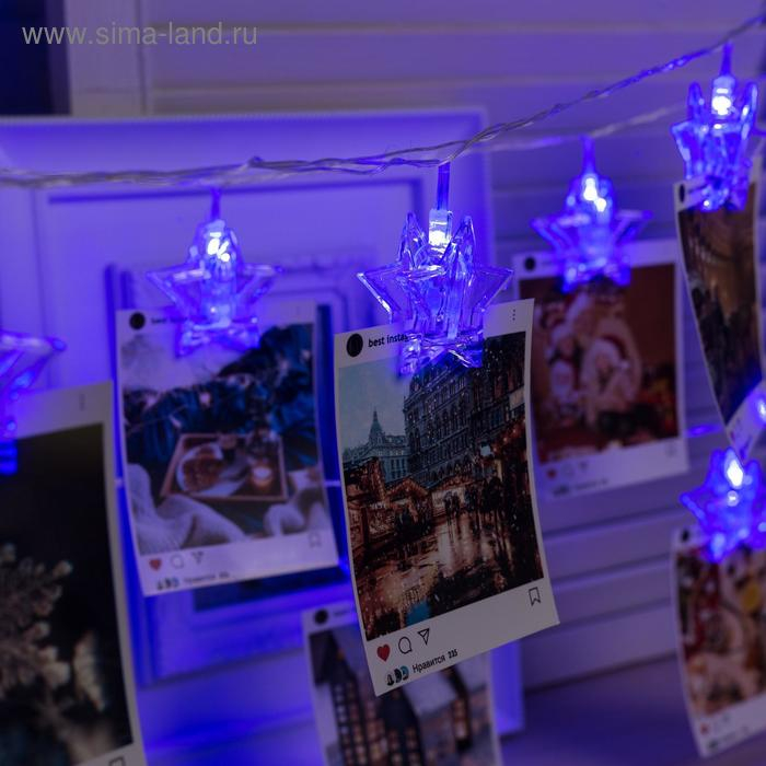 Гирлянда «Нить» 4.5 м с насадками «Прищепки-звёзды», IP20, прозрачная нить, 20 LED, свечение синее, 220 В
