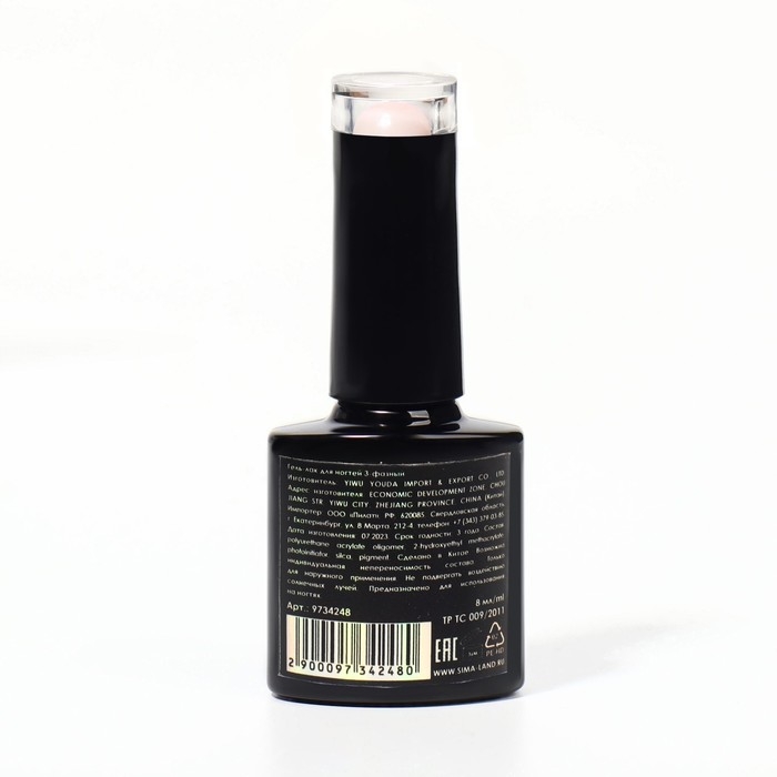 База камуфлирующая для ногтей, 3-х фазная, 8мл, LED/UV, цвет светло-персиковый (004)