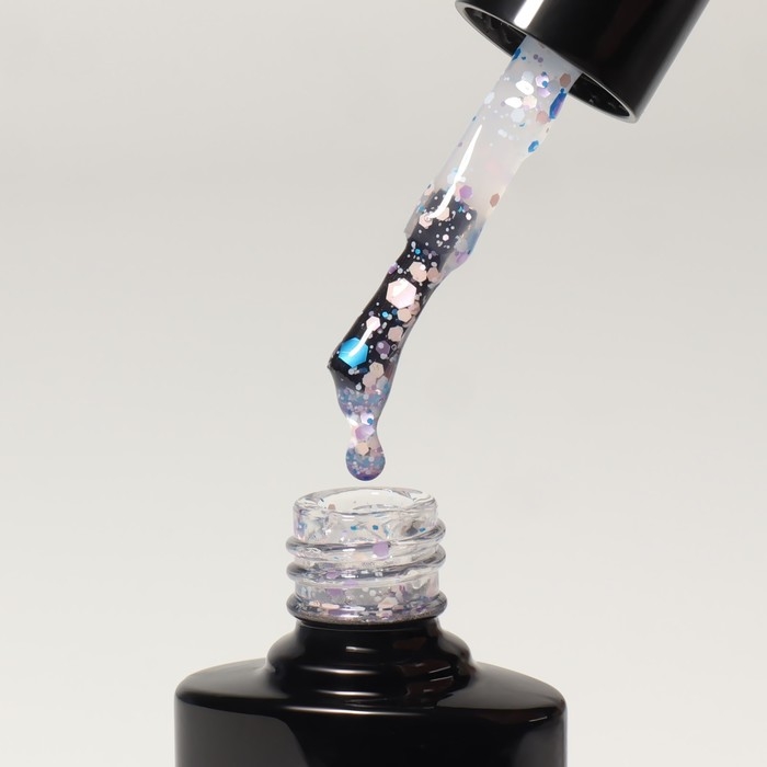 Гель лак для ногтей, с блёстками, 3-х фазный, 8 мл, LED/UV, голубой