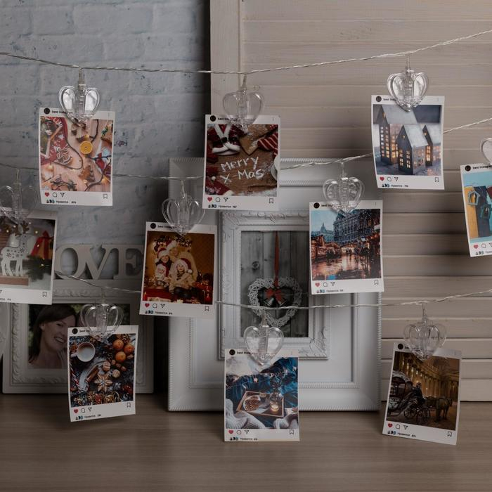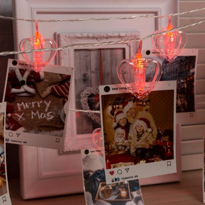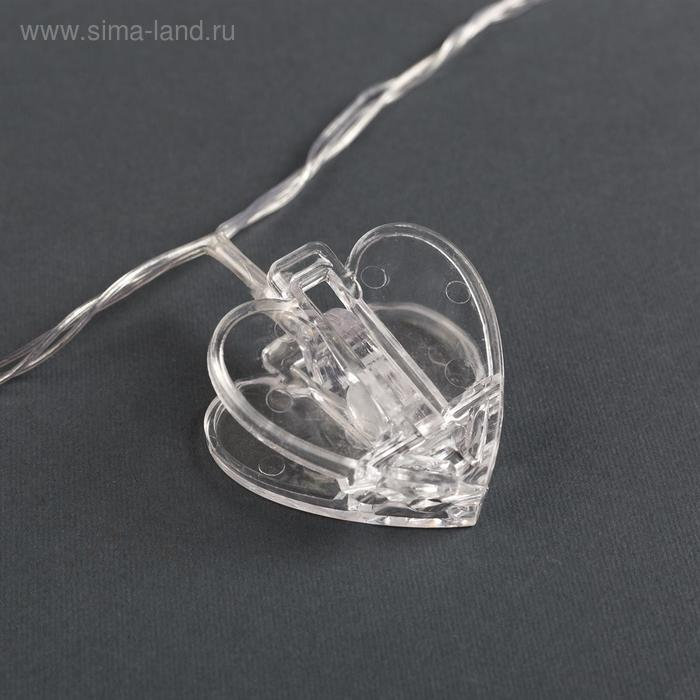 Гирлянда «Нить» 4.5 м с насадками «Прищепки-сердце», IP20, прозрачная нить, 20 LED, свечение красное, 220 В