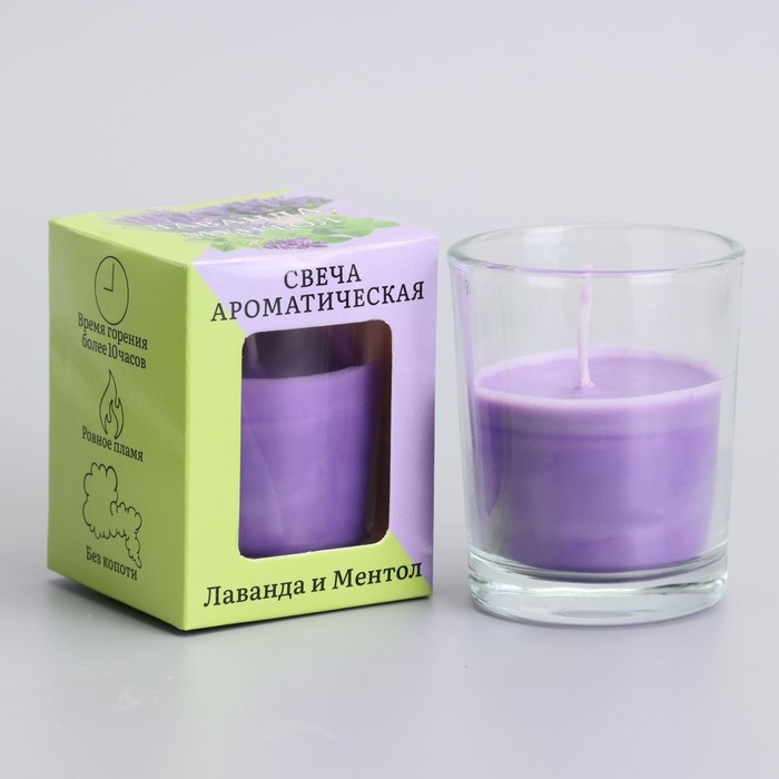 Свеча ароматическая в стекле 5х6см, Лаванда и ментол