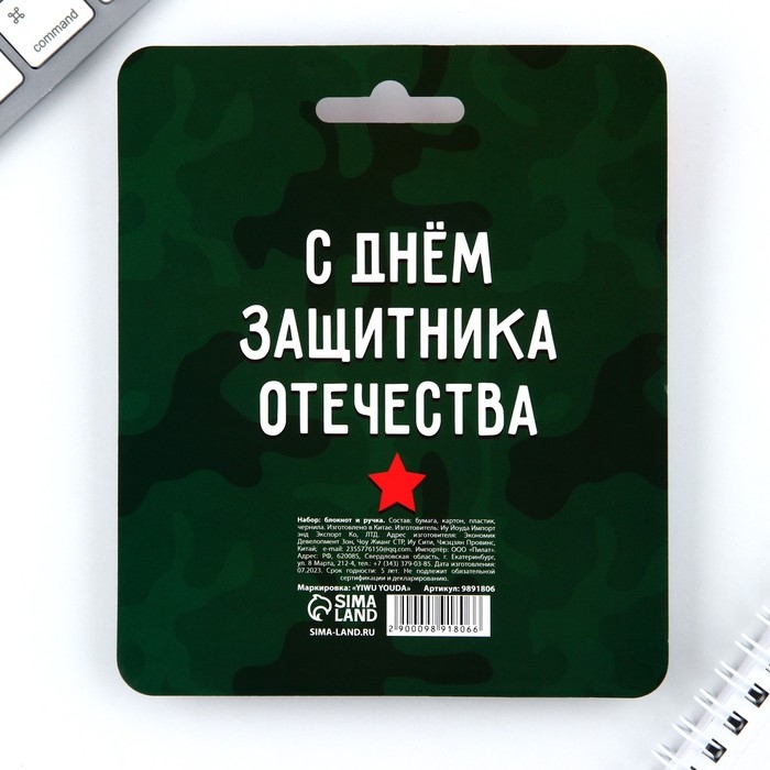 Набор: блокнот 48 листов + ручка «Юному герою!», 13,5 х 15 см