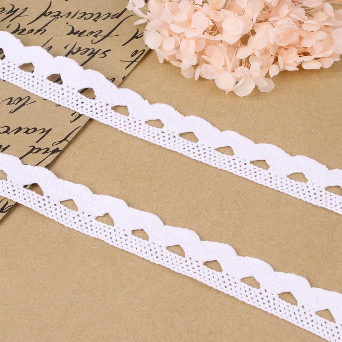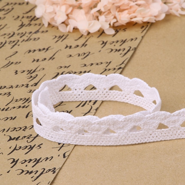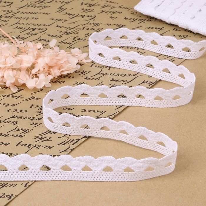 Кружево гипюровое, 15 мм × 14 ± 1 м, цвет белый