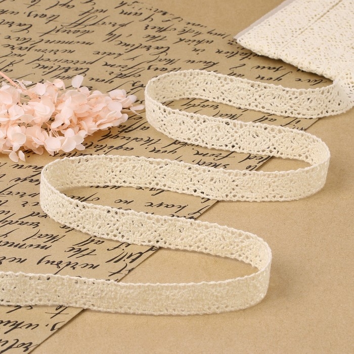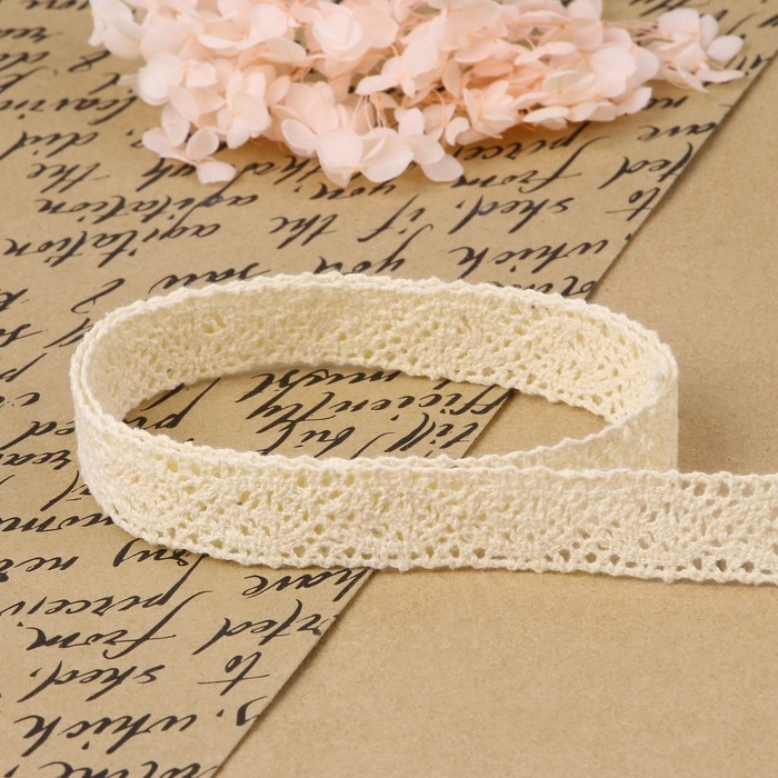 Кружево вязаное, 22 мм × 10 ± 1 м, цвет бежевый