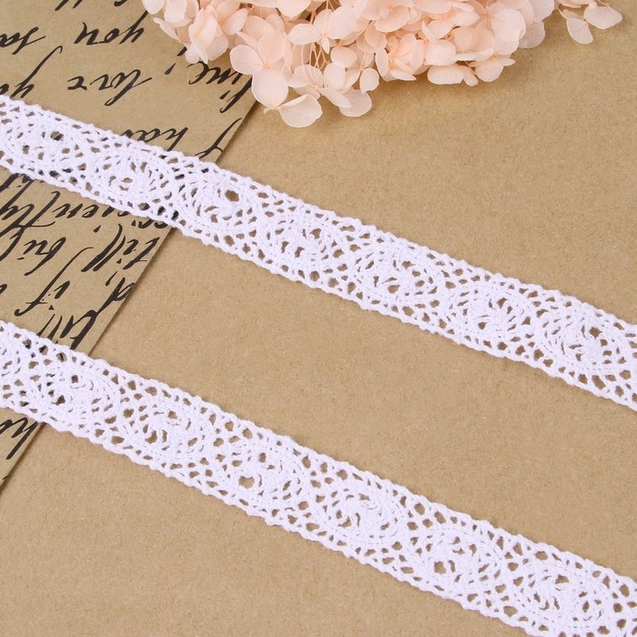Кружево вязаное, 22 мм × 10 ± 1 м, цвет белый