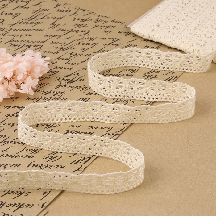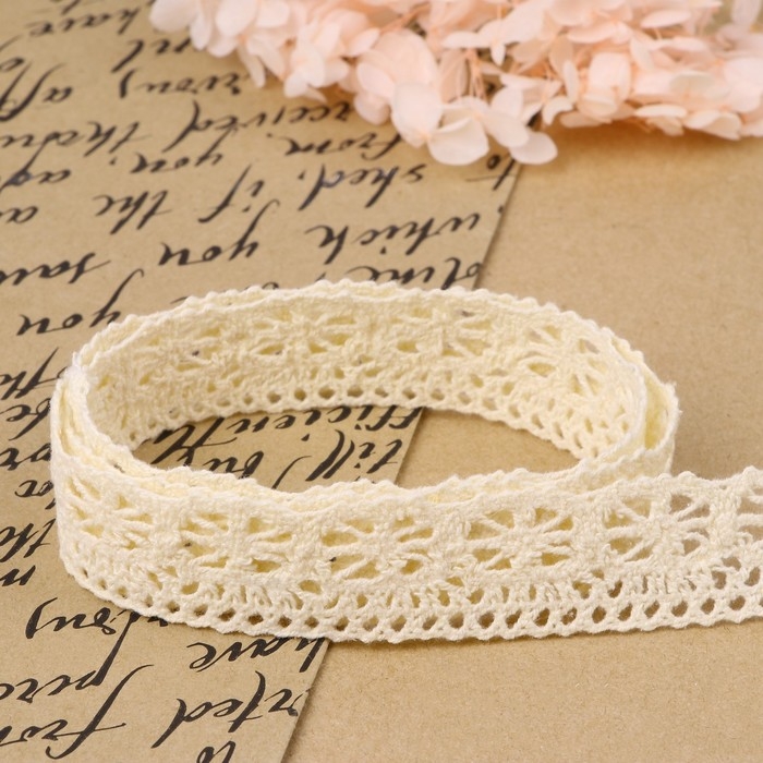 Кружево вязаное, 25 мм × 10 ± 1 м, цвет бежевый