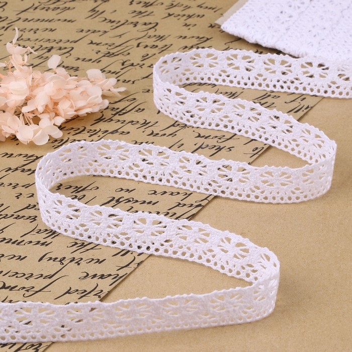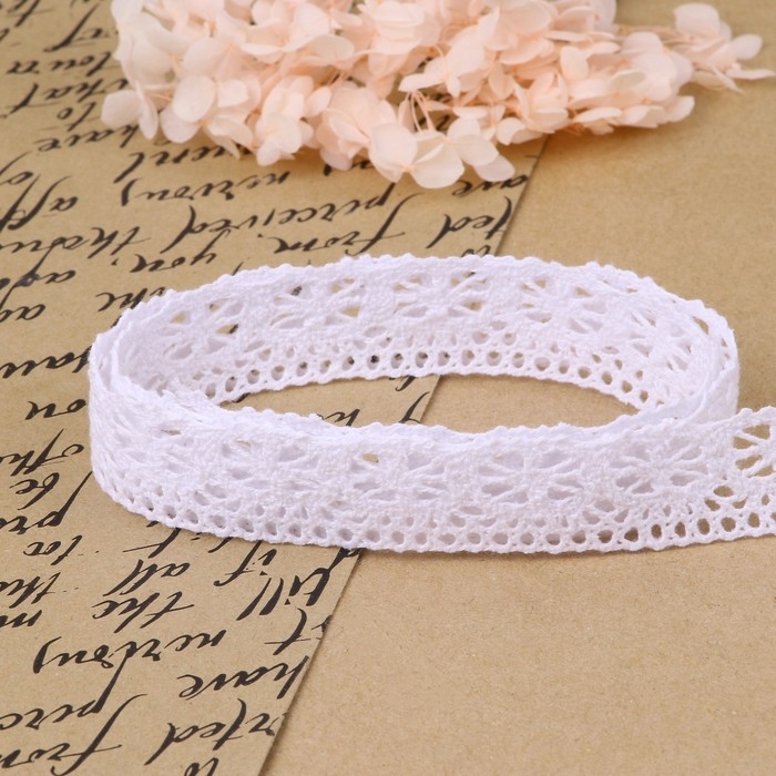 Кружево вязаное, 25 мм × 10 ± 1 м, цвет белый