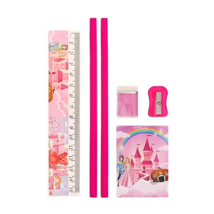 Набор настольный детский "Единорог" (подставка+2 карандаша+линейка+точилка+ластик+блокнот 8 листов)