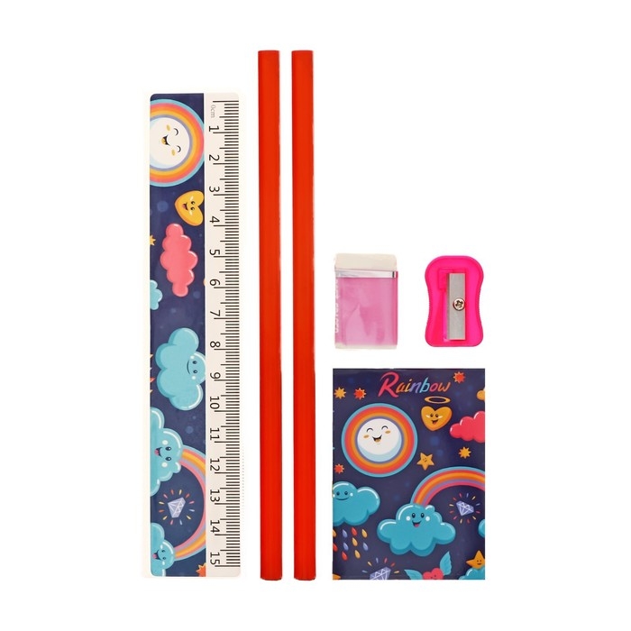 Набор настольный детский "Единорог" (подставка+2 карандаша+линейка+точилка+ластик+блокнот 8 листов)