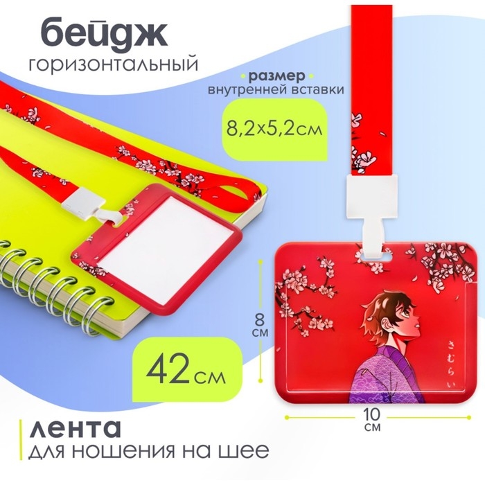 Бейдж горизонтальный, внешний 100 х 80мм, внутренний 52 х 82мм, лента 42 см, Аниме