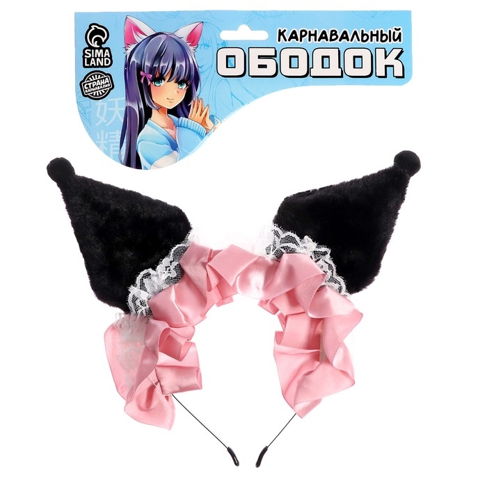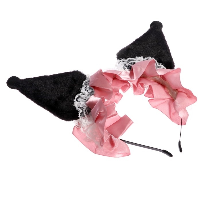 Карнавальный ободок новогодний «Кошка» с рюшками, цвет розовый, аниме