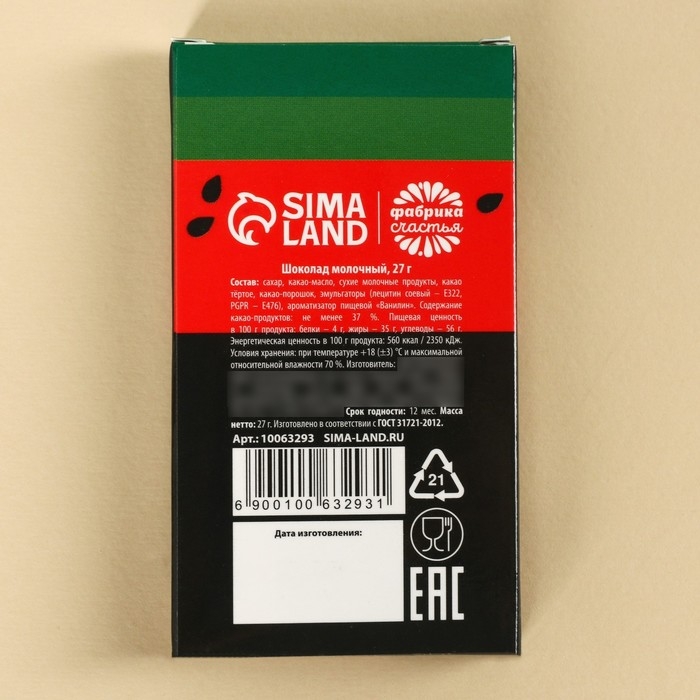 Шоколад молочный «Для карьерного роста»: 27 г.