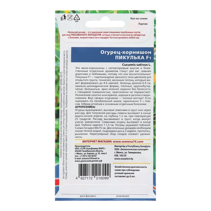 Семена Огурец "Пикулька - корнишон", 10 шт