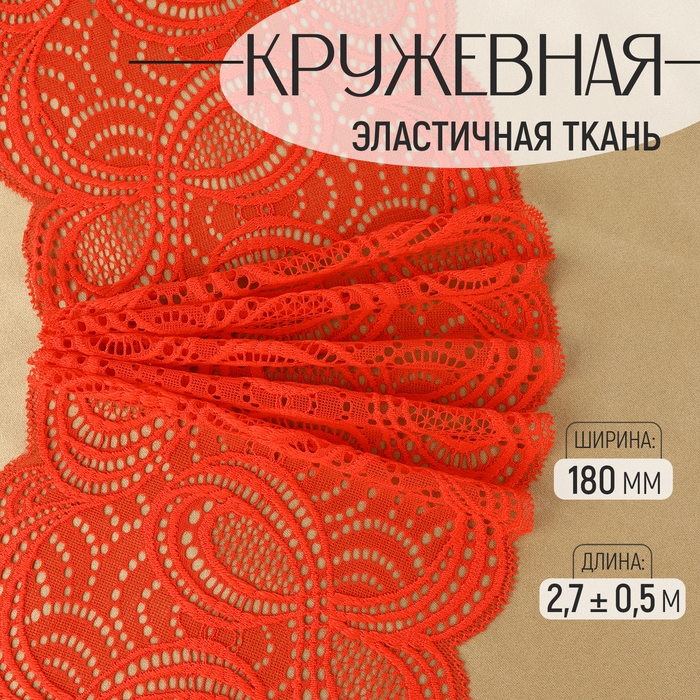 Кружевная эластичная ткань, 180 мм × 2,7 ± 0,5 м, цвет красный