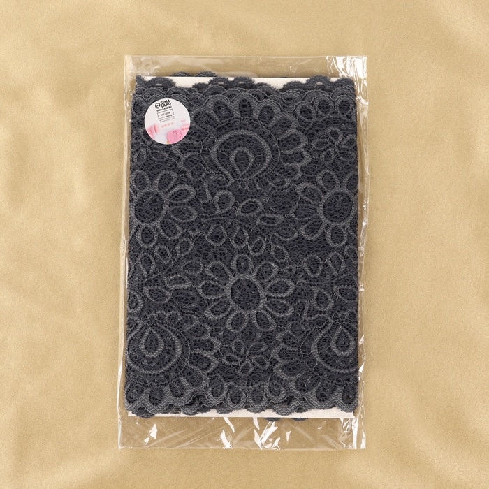 Кружевная эластичная ткань, 190 мм × 2,7 ± 0,5 м, цвет графитовый