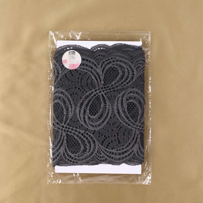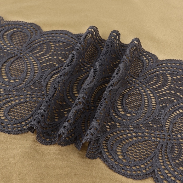 Кружевная эластичная ткань, 180 мм × 2,7 ± 0,5 м, цвет графитовый