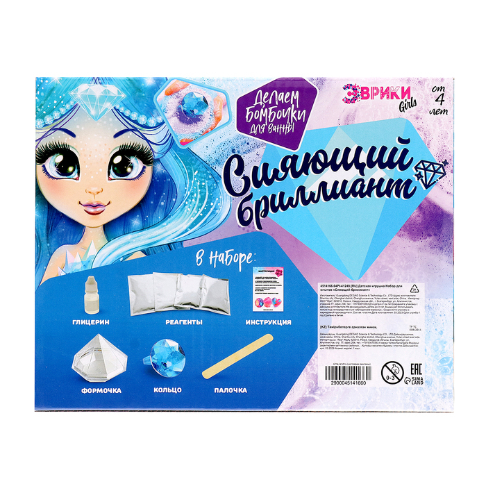 Набор для опытов «Сияющий бриллиант», бомбочки для ванны, своими руками