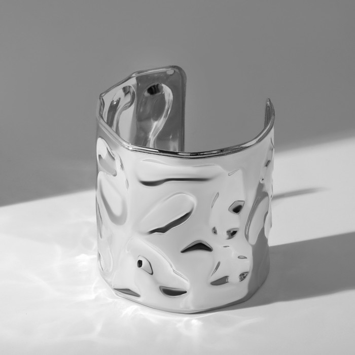 Браслет металл «Манжета» с выемками, цвет серебро