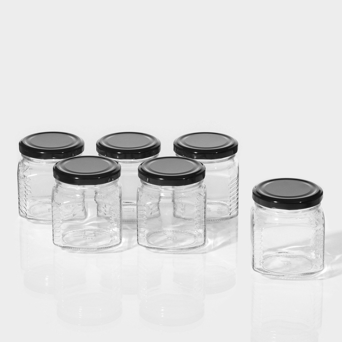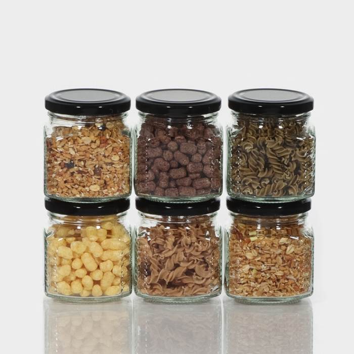 Набор стеклянных банок с чёрной полимерной крышкой, ТО-82 мм, 450 мл, 6 шт.