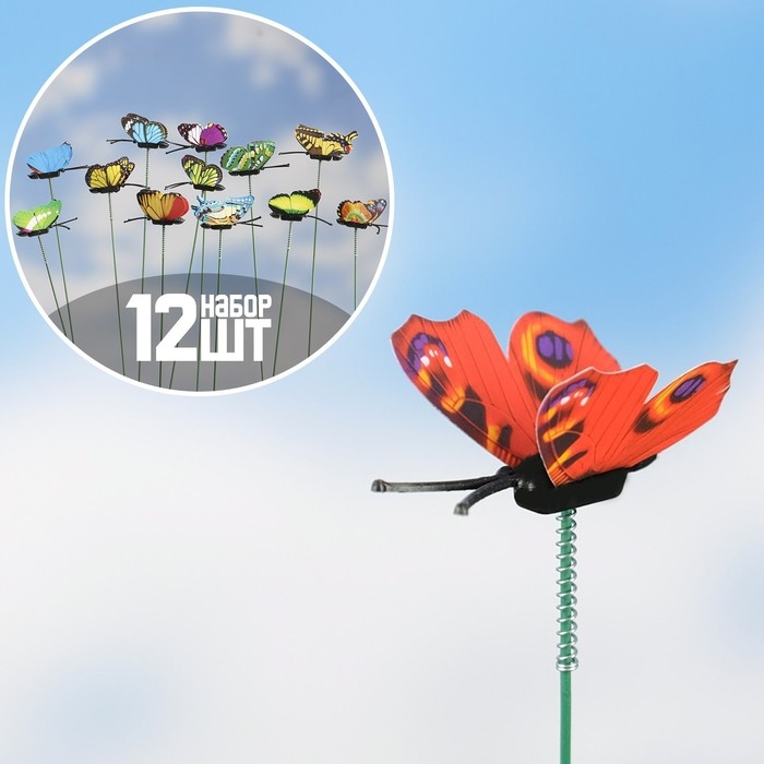 Штекер "Бабочка Мейбл" 4см/27см, набор 12шт, МИКС