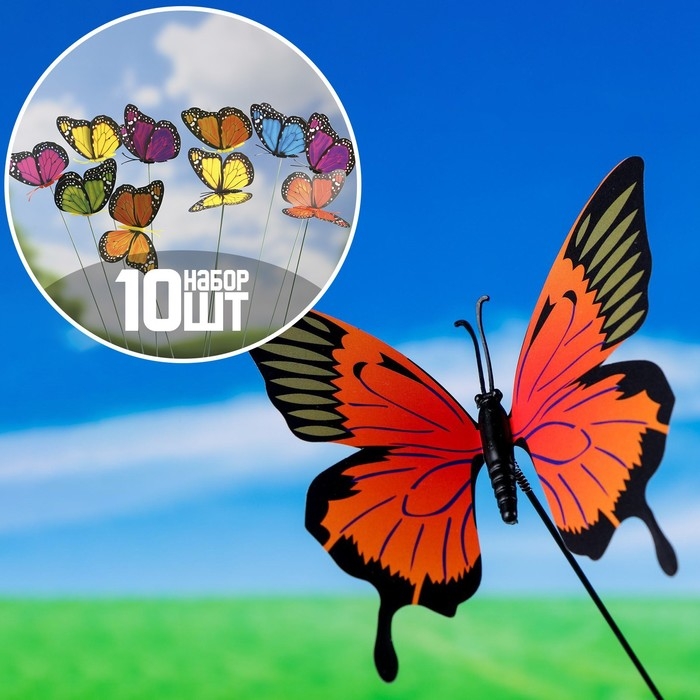 Штекер "Бабочка Октавия" 8х10см/25см, набор 10шт, МИКС