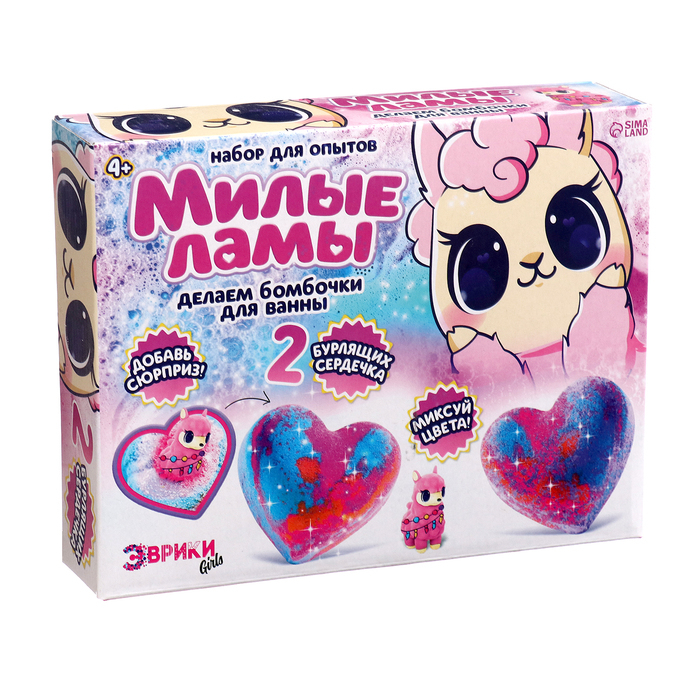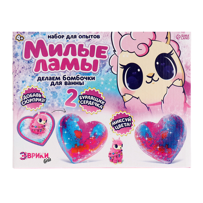 С набором для опытов «Милые ламы» ребёнок проведёт увлекательный эксперимент и самостоятельно сделает 2 бурлящие бомбочки для ванны.