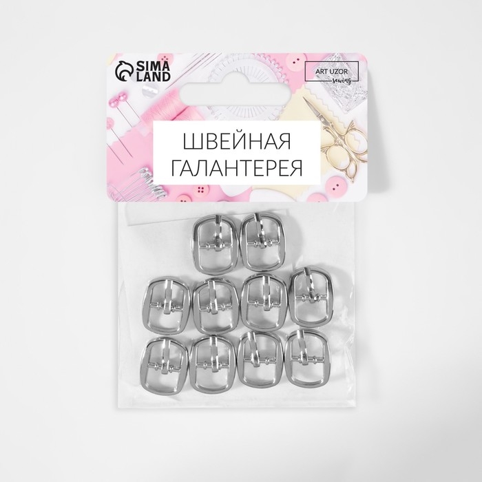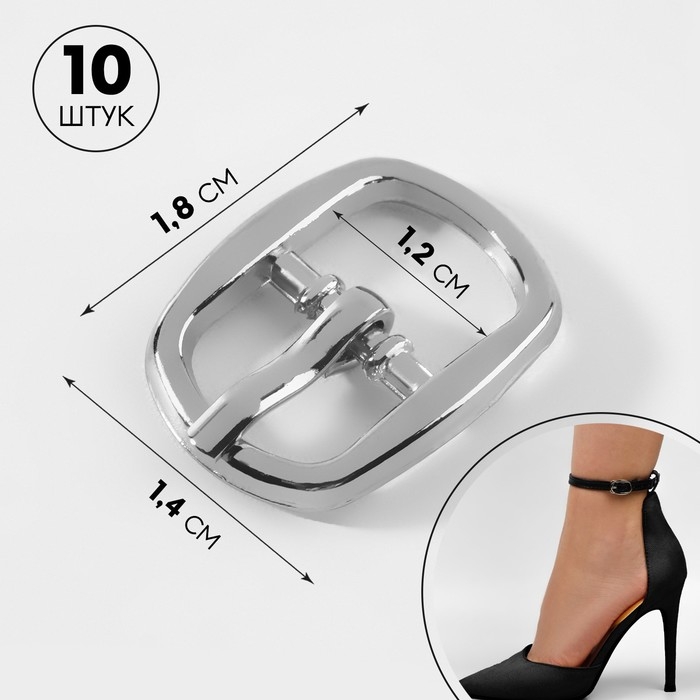 Пряжка, 1,8 × 1,4 см, 12 мм, 10 шт, цвет серебряный