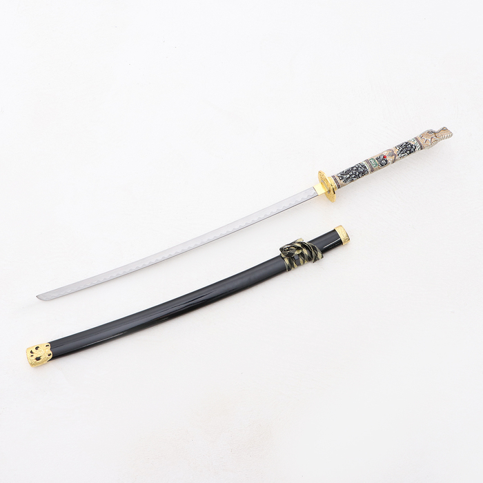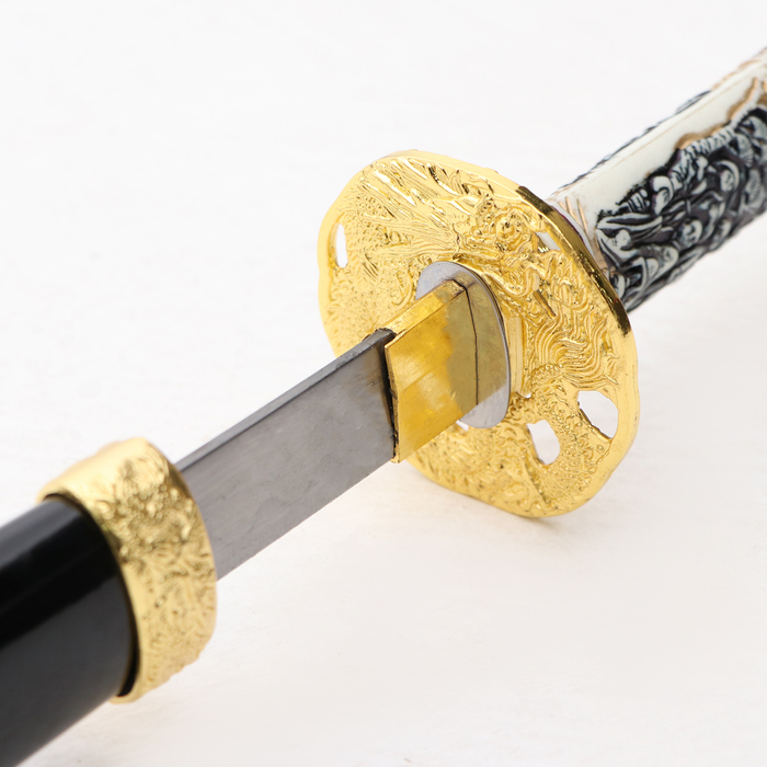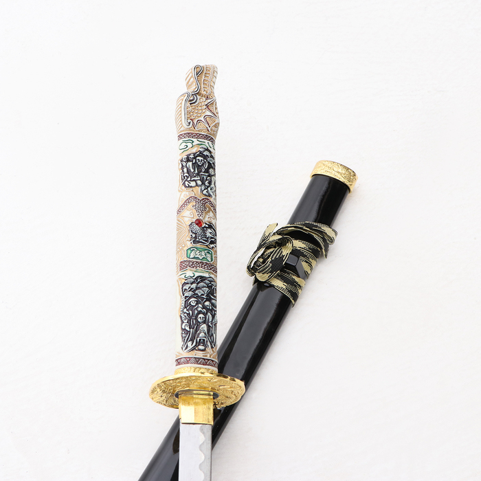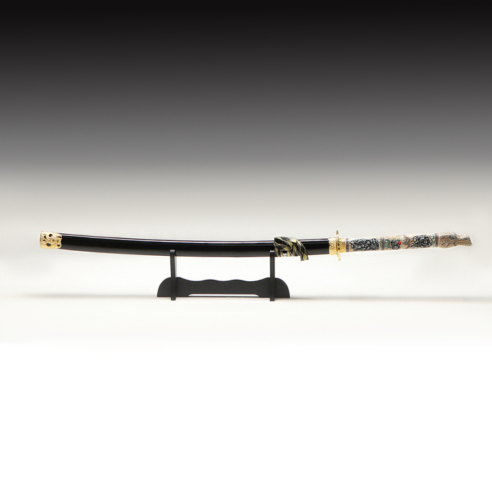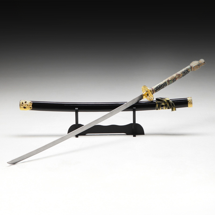 Сувенирное оружие «Катана на подставке», чёрные ножны, рукоятка — под слоновую кость, 108 см
