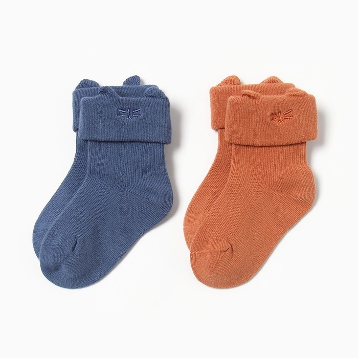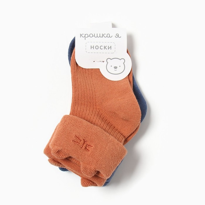Набор носков Крошка Я Basic Line, 2 пары, 0-6 мес., кирпичный/синий