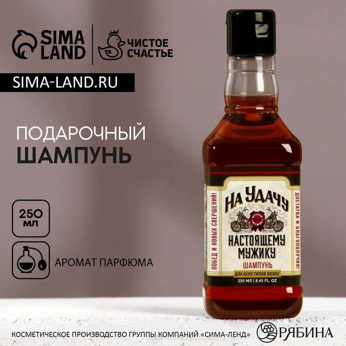 Шампунь для волос во флаконе виски «На удачу!», 250 мл, аромат мужского парфюма, Новый Год