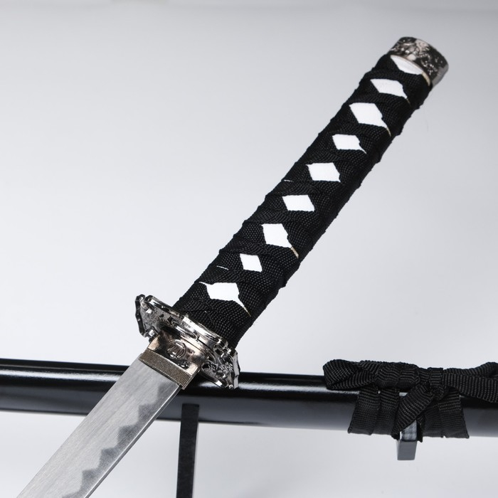 Сувенирное оружие "Катана Хизока" 100 см, клинок 60 см, чёрная, на подставке